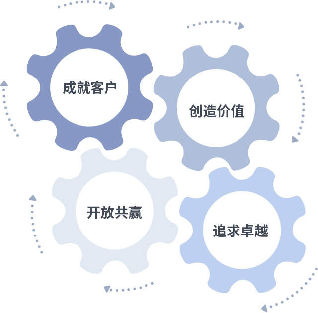 成就客户是一切决策的出发点,,,,创造价值是衡量所有工作的标准,,,追求卓越是永盈会做事做人的态度,,,,开放共赢是永盈会的格局也是最终的结果。。。。价值观的齿轮环环相扣,,推动着组织里的每个人不断向前。。
